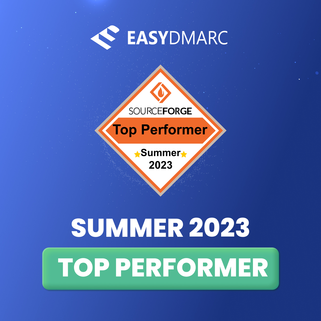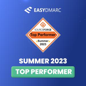MIDDLETOWN, DELAWARE, USA, August 28, 2023/EINPresswire.com/ -- EasyDMARC, a vendor of the cloud-native email security and deliverability platform, today announced that it has been awarded a Summer 2023 Top Performer Award by SourceForge, the leading software and services review and comparison website. This award recognizes exceptional companies and products with a significant amount of recent favorable user reviews that puts them in the top tenth percentile of highly reviewed products on SourceForge.