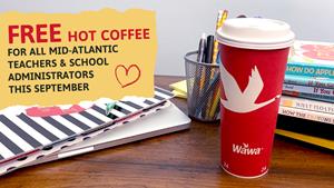 All day, every day from September 1 - 30, any size hot coffee is free for all teachers and school administration in Mid-Atlantic states including PA, NJ, DE, MD, VA and Washington, D.C. Faculty need to simply share that they work at a school at the register to receive offer.