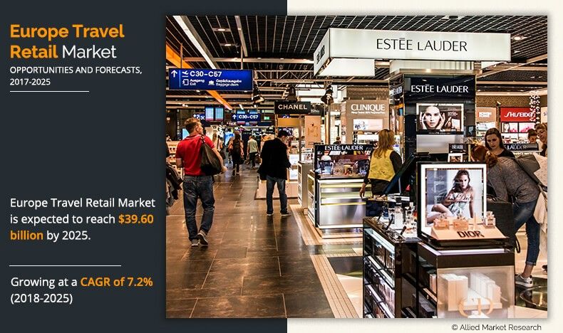 PORTLAND, 5933 NE WIN SIVERS DRIVE, UNITED STATES, August 30, 2023/EINPresswire.com/ -- According to a new report published by Allied Market Research titled,"Europe Travel Retail Market by Product and Channel: Opportunity Analysis and Industry Forecast, 2018 - 2025,"the Europe travel retail market size was valued at $23.03 billion in 2017, and is projected to reach $39.60 billion by 2025, growing at a CAGR of 7.2% from 2018 to 2025. The perfumes & cosmetics segment has a strong customer base in the Europe travel retail market. Some of the leading companies, such as Estee Lauder, L’Oréal, Rituals Cosmetics, Revlon, and others, are expanding their businesses by opening their outlets at every international airport with exclusive and wide range of fragrances and skin care products. Billions of people travel internationally every year, and thus, spend money and time at the airports. The travelers get a lot of free time at the airport to browse and buy products. In addition, travel retail creates more visibility for their products, which draws the attention of new customers in different countries and increases brand loyalty of existing customers.