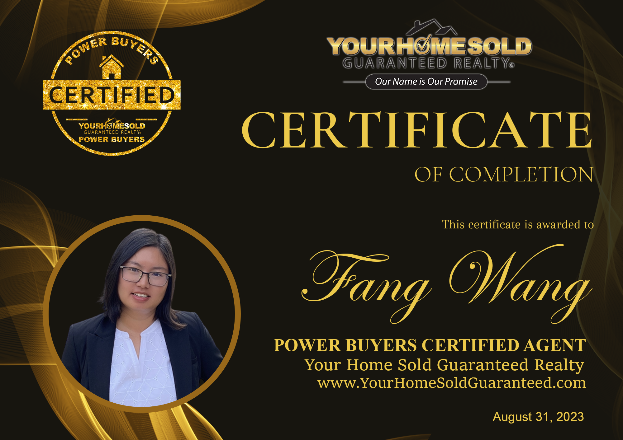Fang Wang's achievement in completing the YHSGR POWER BUYER Agent Certification training underscores their commitment to providing clients with unparalleled advantages in today's competitive real estate market. With these powerful programs at their disposal, Fang Wang is poised to help clients achieve their homeownership dreams with greater ease and success.