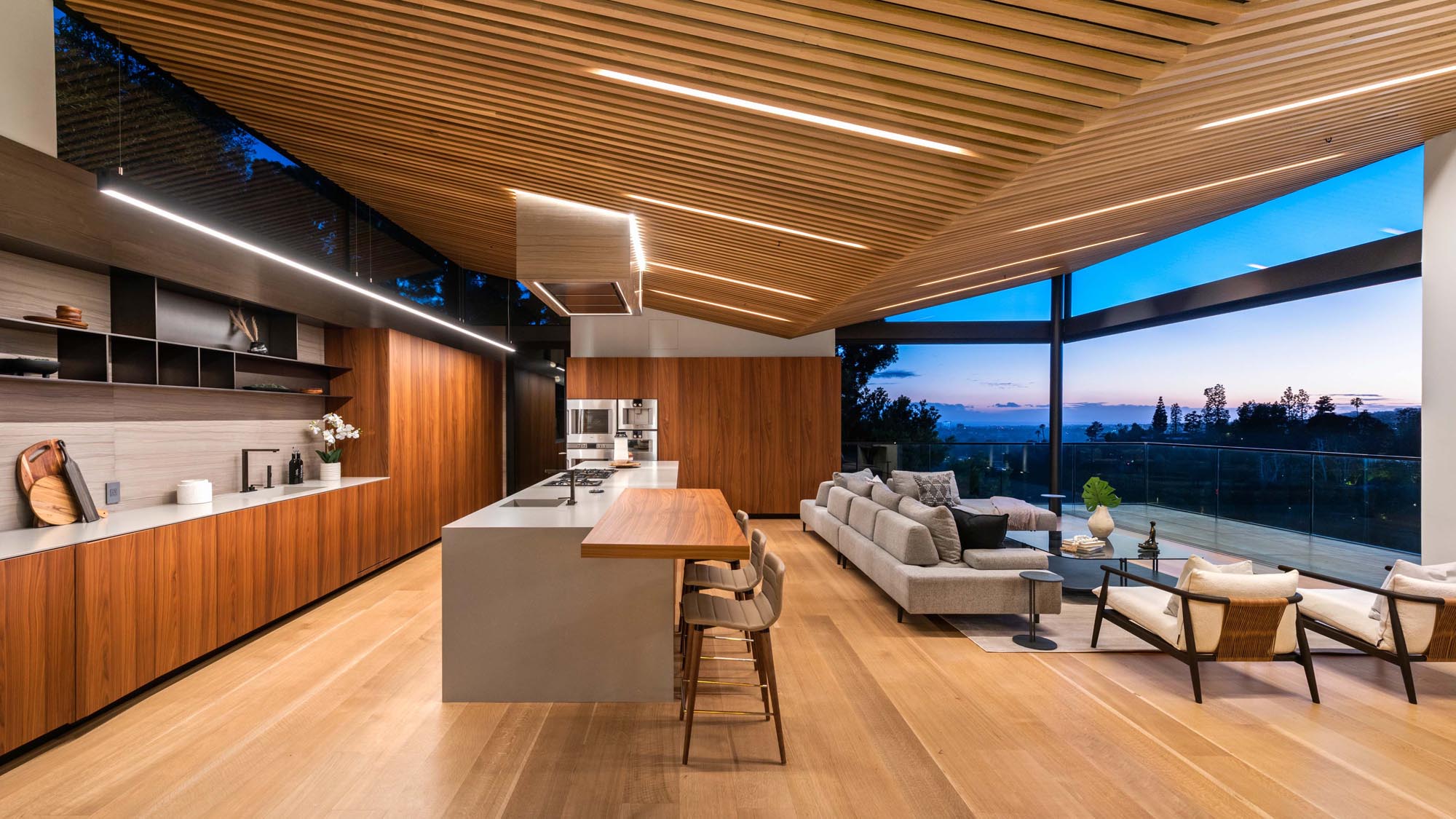 This contemporary estate by Group S Architects is enveloped in a panorama of views. Organic, natural and warm elements are showcased in the interior and exterior. The expansive open floor plan makes use of 7,200 square feet of main-house living space, with disappearing doors that blur the line between indoors and out. Inside, discover five bedroom, five bathrooms, and one half bathroom. Multiple wrap-around terraces, a rooftop patio, and infinity-edge pool and spa ideal for entertaining. An additional 2,200±-square-foot wing awaits customization; envision a state-of-the-art club and lounge, sports court, or artist retreat.