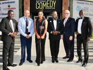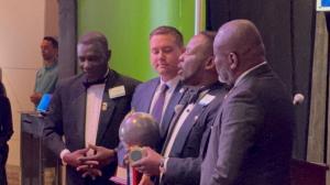 Hugues Sanon honored Mayor Eddie Sundquist for outstanding service and great leadership at Democratic committee Gala with Governor Kathy Hochul in Jamestown