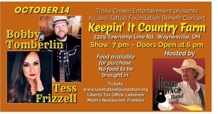 This event is part of the Love Tattoo Foundation’s concert series. Tickets are available for purchase at www.lovetattoofoundation.org, Liberty Tax Office in Lebanon, OH, and Mom’s Restaurant in Franklin, OH.