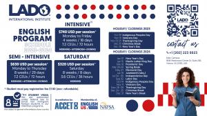 Además, para brindar mayor información, se adjunta el calendario de clases 2023-2024, para quienes deseen incorporarse a las clases en Lado International Institute.