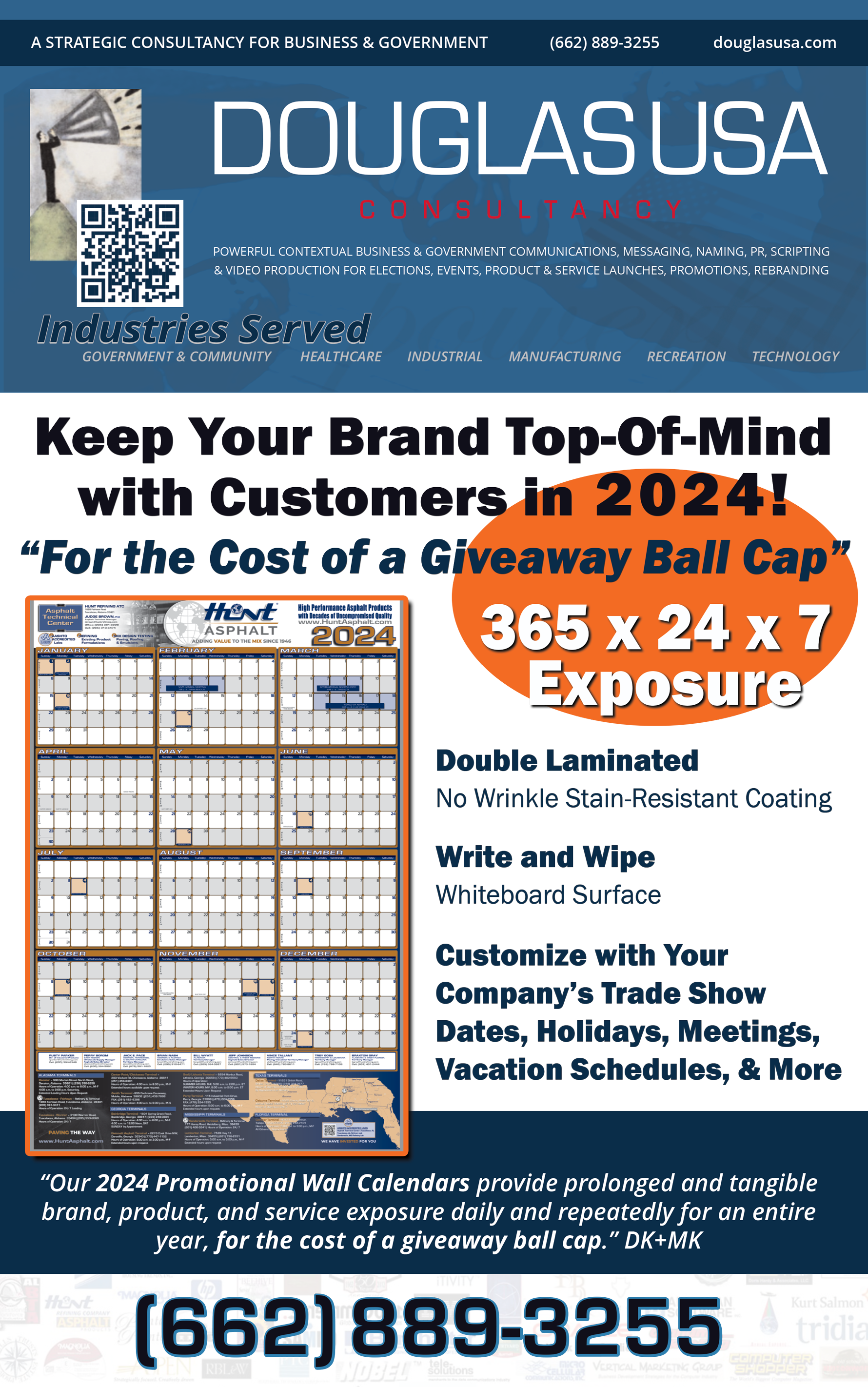 DOUGLAS USA's company-branded wall calendar creations are undeniably cost-effective way to keep brands and their products and services top-of-mind in 2024