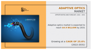 PORTLAND, OR, UNITED STATES, September 20, 2023/EINPresswire.com/ -- Allied Market Research recently published a report, titled, "Adaptive Optics Market by Component (Wavefront Sensor, Wavefront Modulator, Control System), by Industry Vertical (Astronomy, Biomedical, Military & Defense, Industrial & Manufacturing, Others), by Application (Ophthalmology, Microscopy, Laser Application, Others): Global Opportunity Analysis and Industry Forecast, 2021-2031." As per the report, the global adaptive optics industry was estimated at $494.5 million in 2021, and is set to reach $4.9 billion by 2031, growing at a CAGR of 25.6% from 2022 to 2031. The report offers a detailed analysis of changing market trends, top segments, key investment pockets, value chains, regional landscapes, and competitive scenarios.