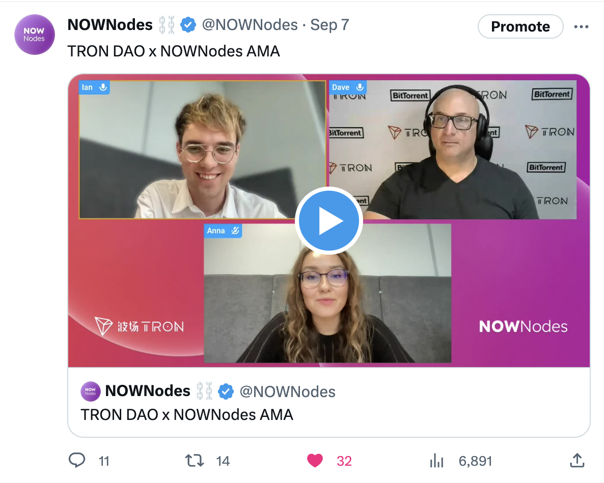 To stay informed on the latest Web3 companies news and the future plans for further partnership between NOWNodes and TRON DAO, visit NOWNodes X (Twitter) and watch the AMA live broadcast, and stay tuned with the new posts.