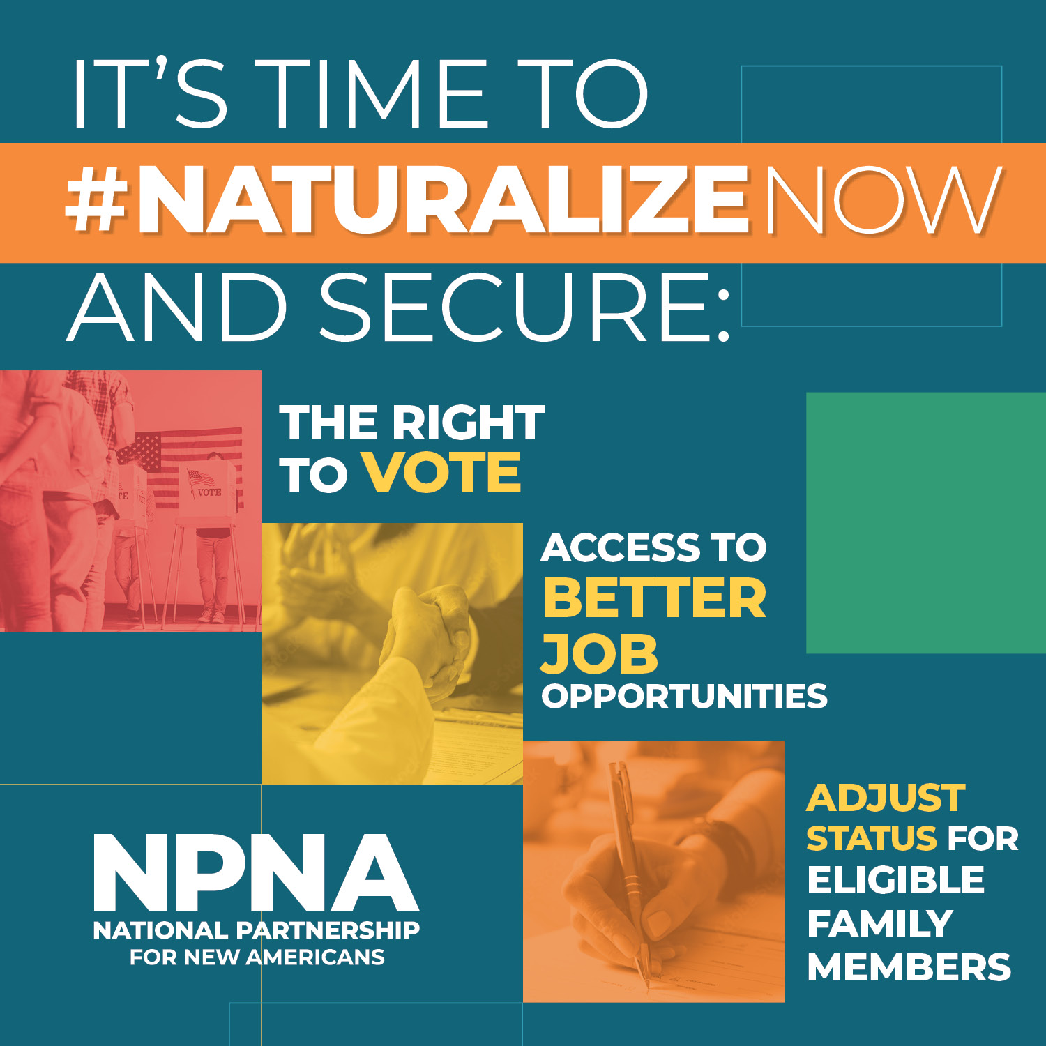The National Partnership for New Americans (NPNA) is a national multiethnic, multiracial partnership network of 66 of the country’s leading immigrant and refugee rights organizations who together advocate for policies and programs to successfully integrate New Americans. NPNA exists to advance an immigrant equity and inclusion agenda at the state, local and federal level through policy, advocacy, and service programs that create vast opportunities for immigrant and refugee communities to achieve full civic, social and economic justice.
