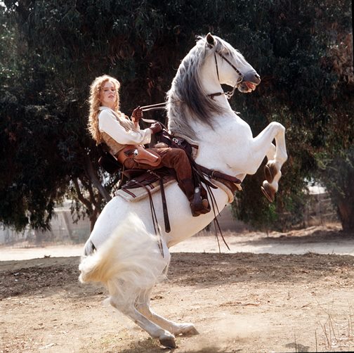 Vivian Schilling portrays a lady-gunslinger in the western-family feature, SAVAGE LAND, part of a multi-title licensing placement with ROKU from Hannover House.