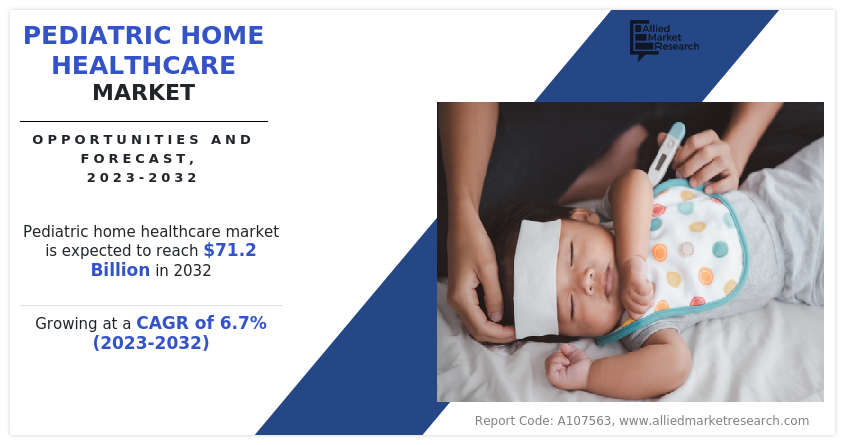 PORTLAND, OREGON, UNITED STATES, September 26, 2023 /EINPresswire.com/ -- The Pediatric Home Healthcare Market offers a compassionate approach to healthcare for our littlest patients. Beyond the clinical setting, it brings healing and support to children within the comfort of their own homes. This market is witnessing a surge in demand, driven by the desire for family-centered care, reduced hospitalization, and the growing prevalence of chronic conditions in children. With skilled nurses, therapists, and caregivers providing specialized care, it's a nurturing environment where children can thrive while receiving the essential medical attention they need. The global pediatric home healthcare market size was valued at $37.2 billion in 2022 and is estimated to reach $71.2 billion by 2032, growing at a CAGR of 6.7% from 2023 to 2032.