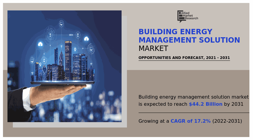 PORTLAND, OREGON, UNITED STATES, September 26, 2023 /EINPresswire.com/ -- According to a new report published by Allied Market Research, titled, “Building Energy Management Solution Market," The building energy management solution market size was valued at $8.8 billion in 2021, and is estimated to reach $44.2 billion by 2031, growing at a CAGR of 17.2% from 2022 to 2031.