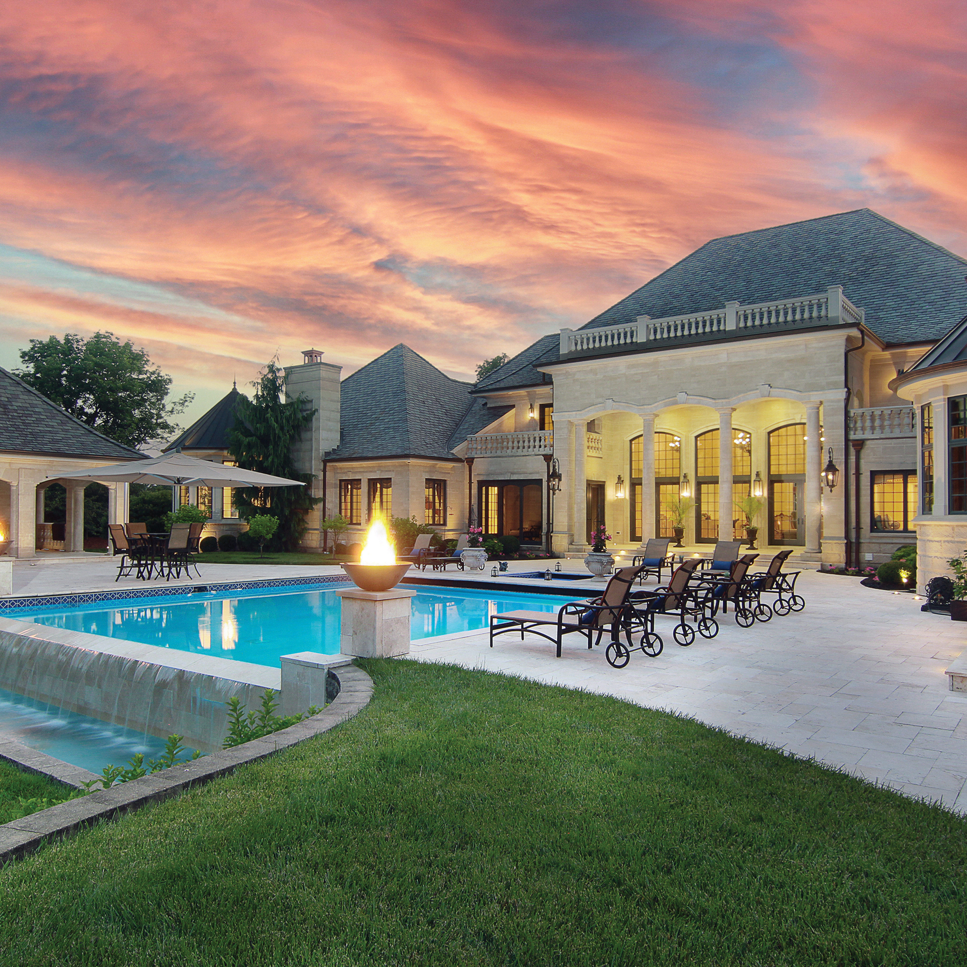 The French Chateau-themed mansion spans an impressive 15,000 square feet, boasting six bedrooms, eight bathrooms, five fireplaces, intricate millwork, and lavish gold and copper leaf accents. The outdoor amenities encompass an infinity pool, spa, hot tub, expansive gardens, and pool house complete with separate living quarters.