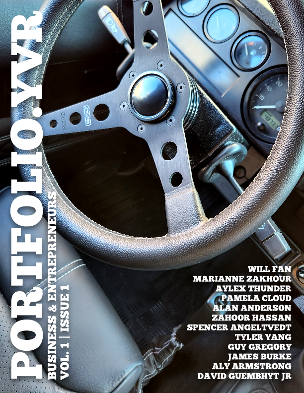 PORTOFOLIO.YVR is a personality-driven business magazine that allows investors and the business community to learn more about what drives those making change through tech, services, innovation, and more, by incorporating a straightforward 3-part format that answers the 'Who, What, and Why' of their ventures along with the personality's portraits and key images, the reader is taken on a more heartfelt journey, without the traditional business magazine style ('stats and graphs,' comparisons, and market analysis), to tell the story.