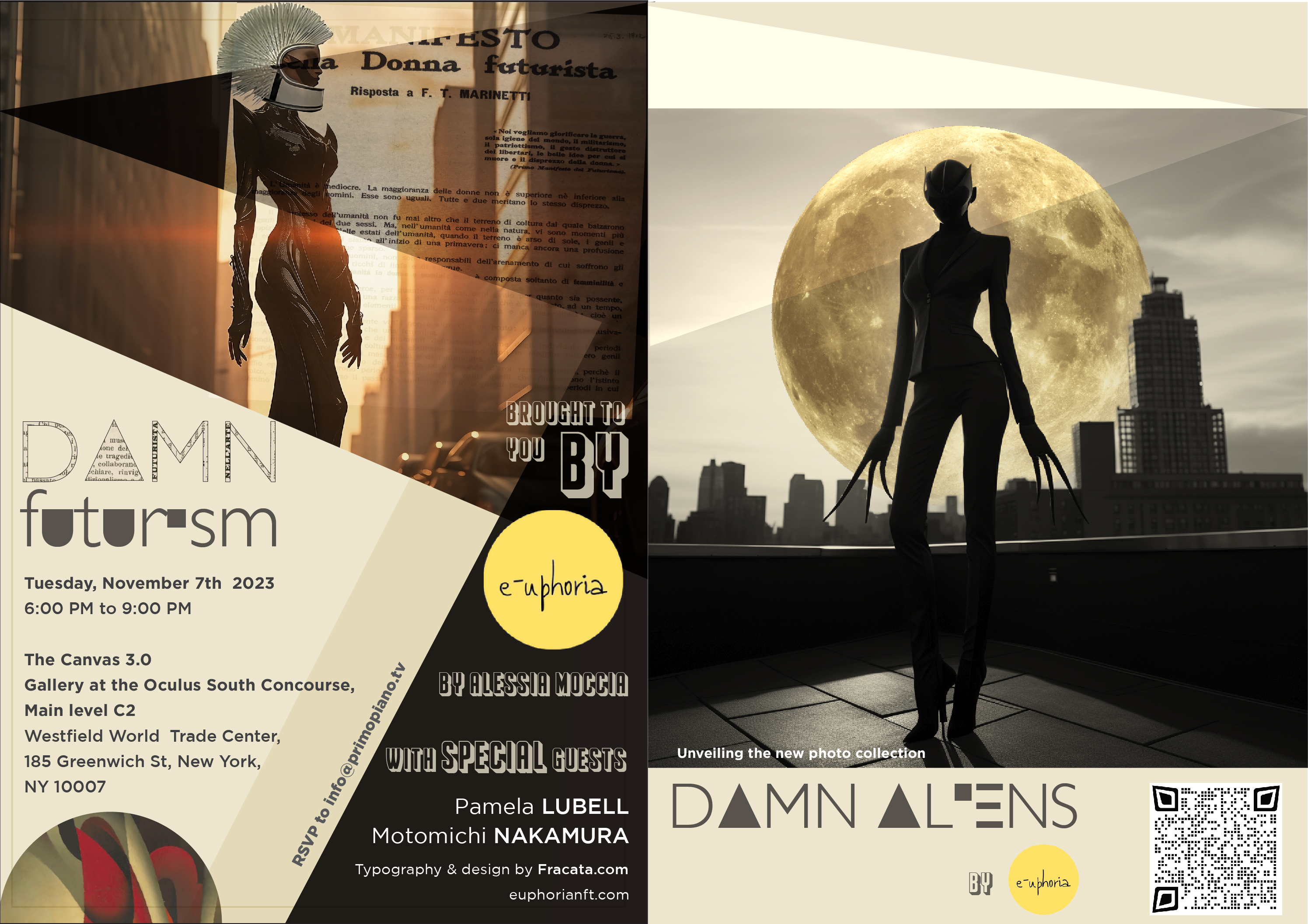 NEW YORK, NY, UNITED STATES, October 6, 2023 /EINPresswire.com/ -- The Oculus at Westfield World Trade Center will be the scenario of DAMN FUTURISM by E-uphoria by Alessia Moccia at THE CANVAS 3.0, 185 Greenwich St, New York, NY 10006. CANVAS 3.0 is a gallery and hub for Web 3.0 experiences in partnership with WHIM.The Experience Futuristic Artistry: