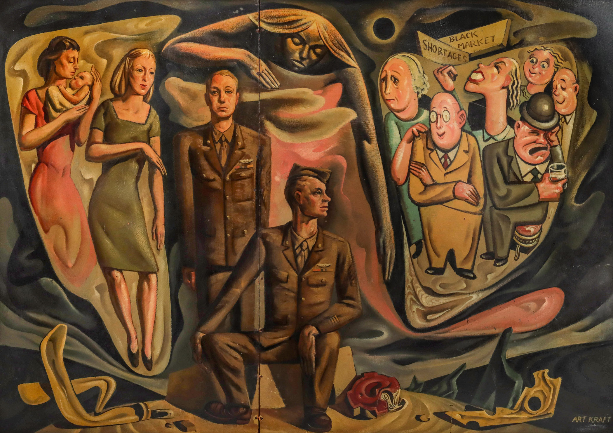 A signed Arthur Kraft (Kansas City, Mo., 1922-1977) World War II-era mural, measuring 5ft by 7ft, is especially noteworthy because it pre-dates by several decades the period during which Kraft became widely recognized as an Expressionist. “To the best of my knowledge, this mural, which is a stark depiction – in a Realistic style – of the struggles brought on by World War II, has never before been recorded. Because it is so early, and because it was painted in a style not previously connected to Kraft, we believe it will be of great interest not only locally but also at a national level,” said Soulis Auctions’ owner and auctioneer, Dirk Soulis. Estimate: $3,000-$5,000
