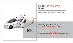 PORTLAND, OR, UNITED STATES, October 3, 2023 /EINPresswire.com/ -- According to a recent report published by Allied Market Research, titled, “Flying car Market by Mode of Transportation, End Use, and Seating Capacity: Global Opportunity Analysis and Industry Forecast, 2025–2035,” the global flying car market was valued at $0.21 billion in 2025, and is projected to reach $3.80 billion by 2035, registering a CAGR of 34.1%.