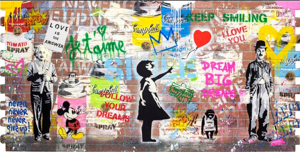With the finesse of a true contemporary artist, Mr Brainwash weaves his distinctive personality into each creation, transmitting his transcendental Pop Art magic, an alternative universe where bold hues dance alongside graffiti-style narratives and splatter-painted masterpieces. Each of his new creations serves as a vibrant portal where American nostalgia intertwines with modern eccentricity, offering a fresh perspective on the collision of the past and present in his ever-evolving cultural landscape.
