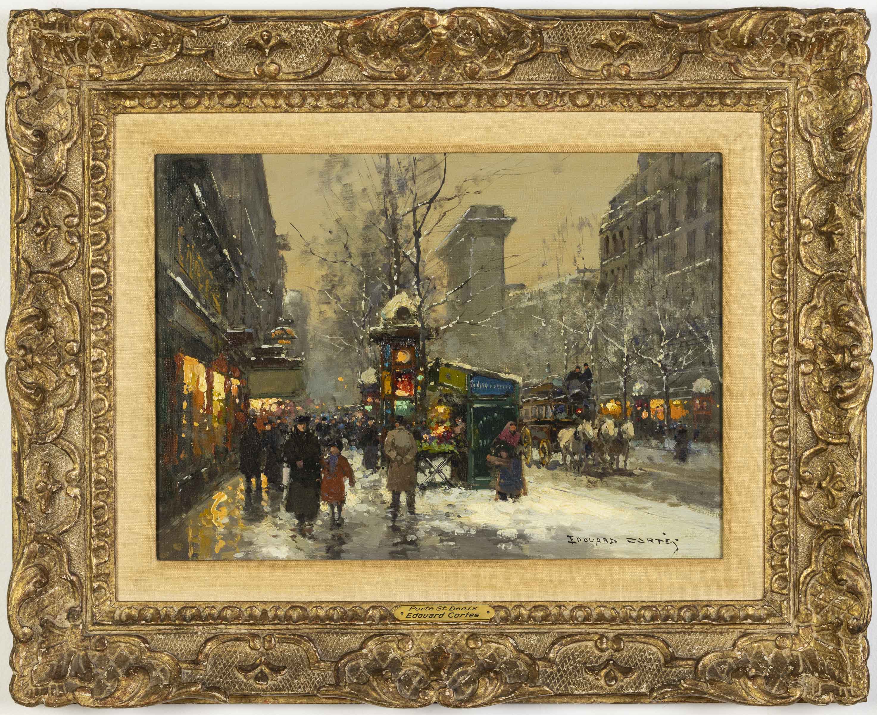 An atmospheric oil painting by Edouard Leon Cortes (French, 1882-1969) titled Porte St. Denis Snow 1905 comes to auction with a $15,000-$20,000 estimate. The work has been authenticated by Vicki Arnot of Arnot Gallery in New York City and will be included in Nicole Verdier’s upcoming supplement to the Edouard Cortes, Catalogue Raisonne, Part III. The son of Antonio Cortes, a painter for the Spanish Royal Court, the younger Cortes studied at Ecole des Beaux-Arts and later gained renown for his paintings of Parisian cityscapes. Edouard Cortes’ work is found in many public and private collections, both in Europe and the United States.