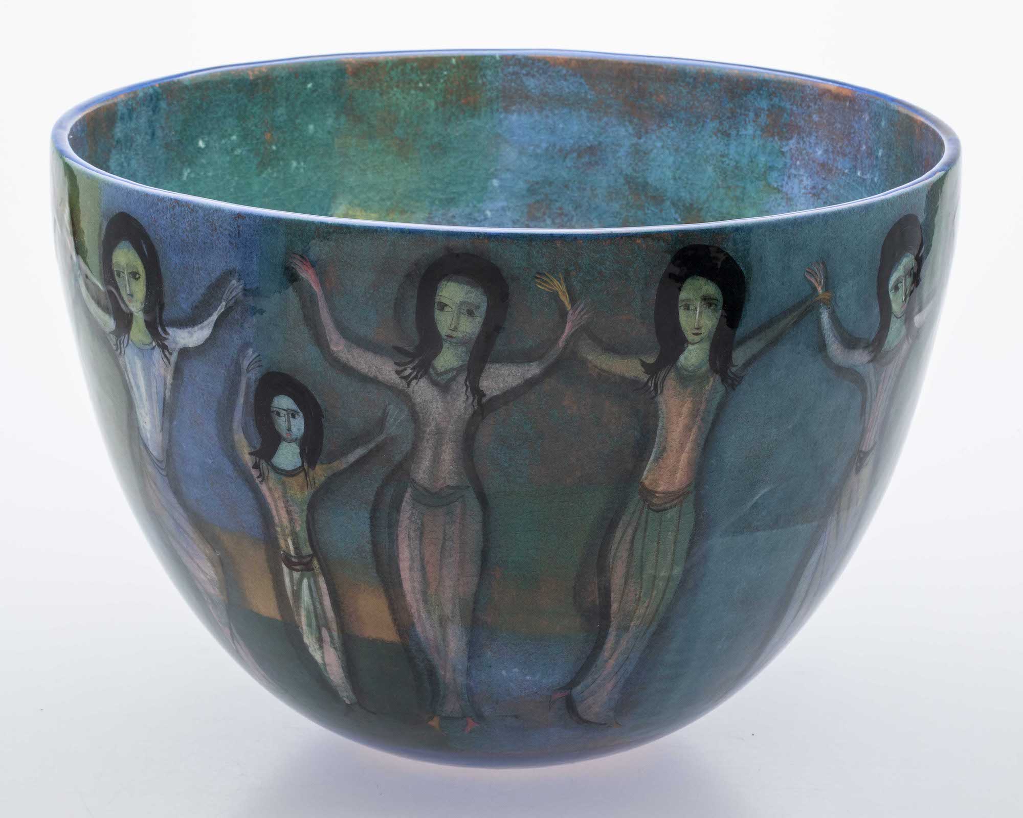 This auction also contains a large collection of works by Polish-American ceramic artist Polia Pillin, whose work is described as being reminiscent to that of Marc Chagall. A large bowl decorated with 14 figures is estimated at $1,500-$2,000. Painted with delicate images of women, horses, and birds, Pillin’s works have an appealingly whimsical quality.