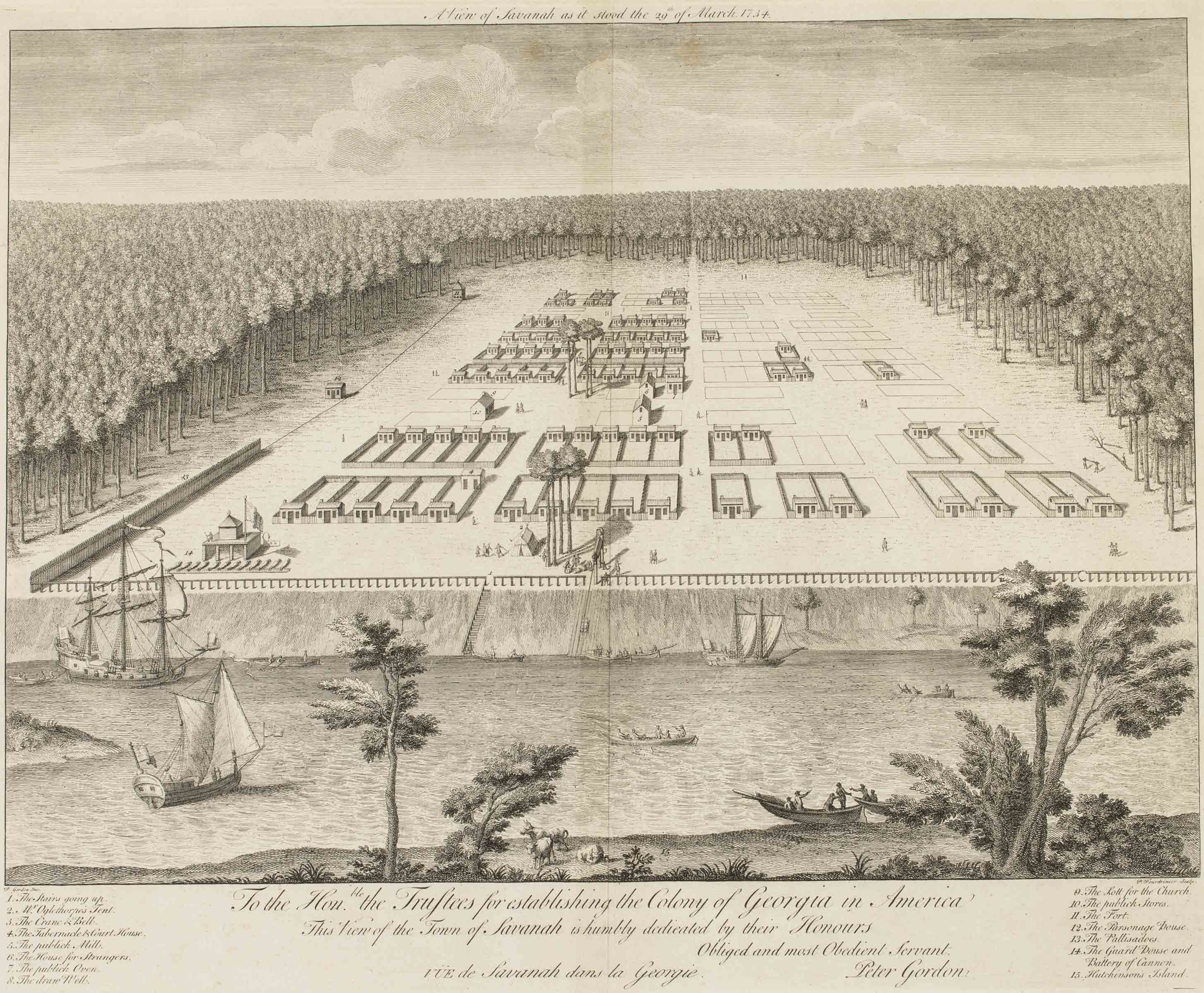 An exceptional addition to the auction is a Peter Gordon (1697-1740) Map of Savannah, 1734. This rare map represents the first known printed view of Savannah, Georgia, and illustrates Georgia colony founder General James E Oglethorpe’s original plan of the city. Only 12 such maps are known to exist in public museums, with a few others in private hands. It is being offered with a $70,000-$90,000 estimate and a starting bid of $50,000.