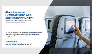OREGAON, PORTLAND, UNITED STATESย , October 5, 2023 /EINPresswire.com/ -- According to the report published by Allied Market Research, the global in-flight entertainment & connectivity market generated $4.13 billion in 2020, and is expected to reach $11.65 billion in 2030, witnessing a CAGR of 11.36% from 2021 to 2030. The report offers a detailed analysis of changing market trends, top segments, key investment pockets, value chain, regional landscape, and competitive scenario.
