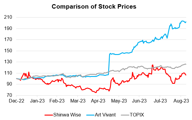 On the other hand, the company's stock price has been weak since the beginning of the year, underperforming the TOPIX. Factors such as capital reduction announced in late July have weighed heavily on the stock price. Art Vivant (7523, Standard), which is in the same industry, has seen its stock price nearly double since the beginning of the year. However, its performance in the current fiscal year has been lackluster.