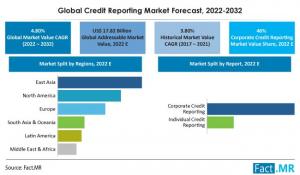 The worldwide credit reporting market displayed a Compound Annual Growth Rate (CAGR) of 3.8% from 2017 to 2021. According to Fact.MR, a reputable market research and competitive intelligence firm, the market is anticipated to experience further growth with a CAGR of 4.8% from 2022 to 2032.
