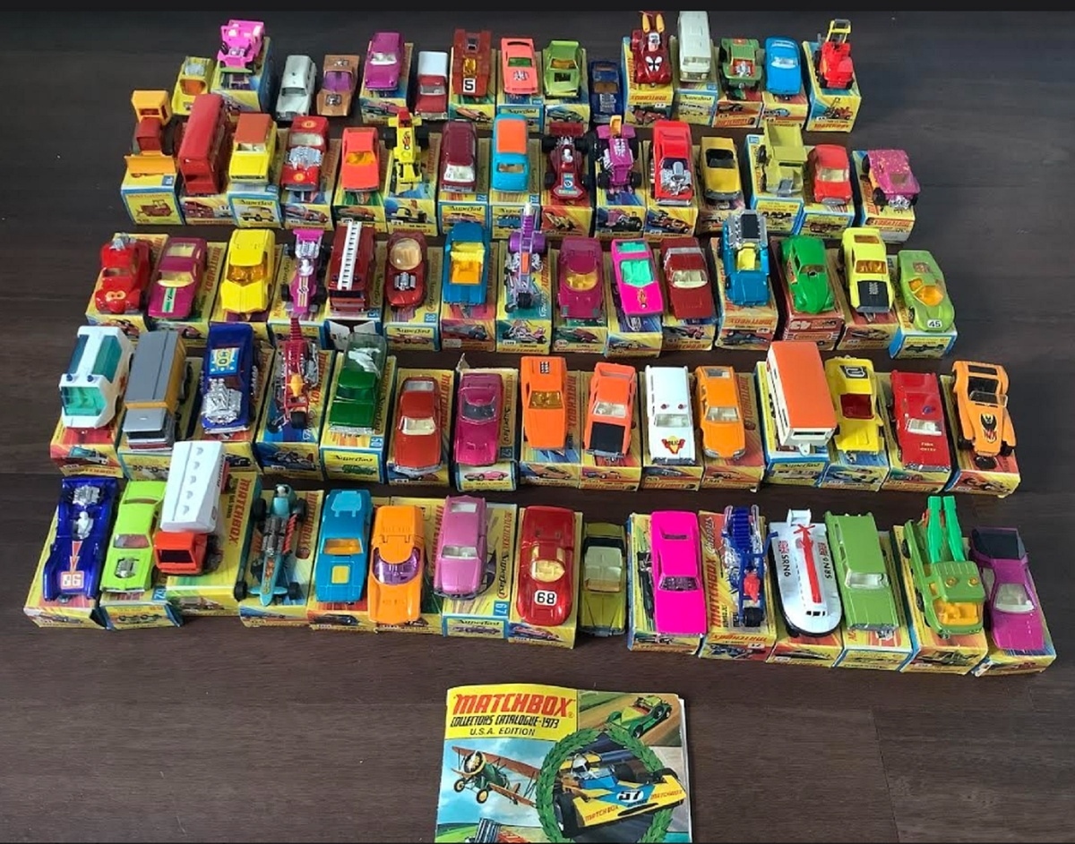 Matchbox collectors group of 75 toy vehicles, the full catalogue set from 1973 complete with brochure. Most come in boxes that are in fair condition (est. $4,500-$6,000).