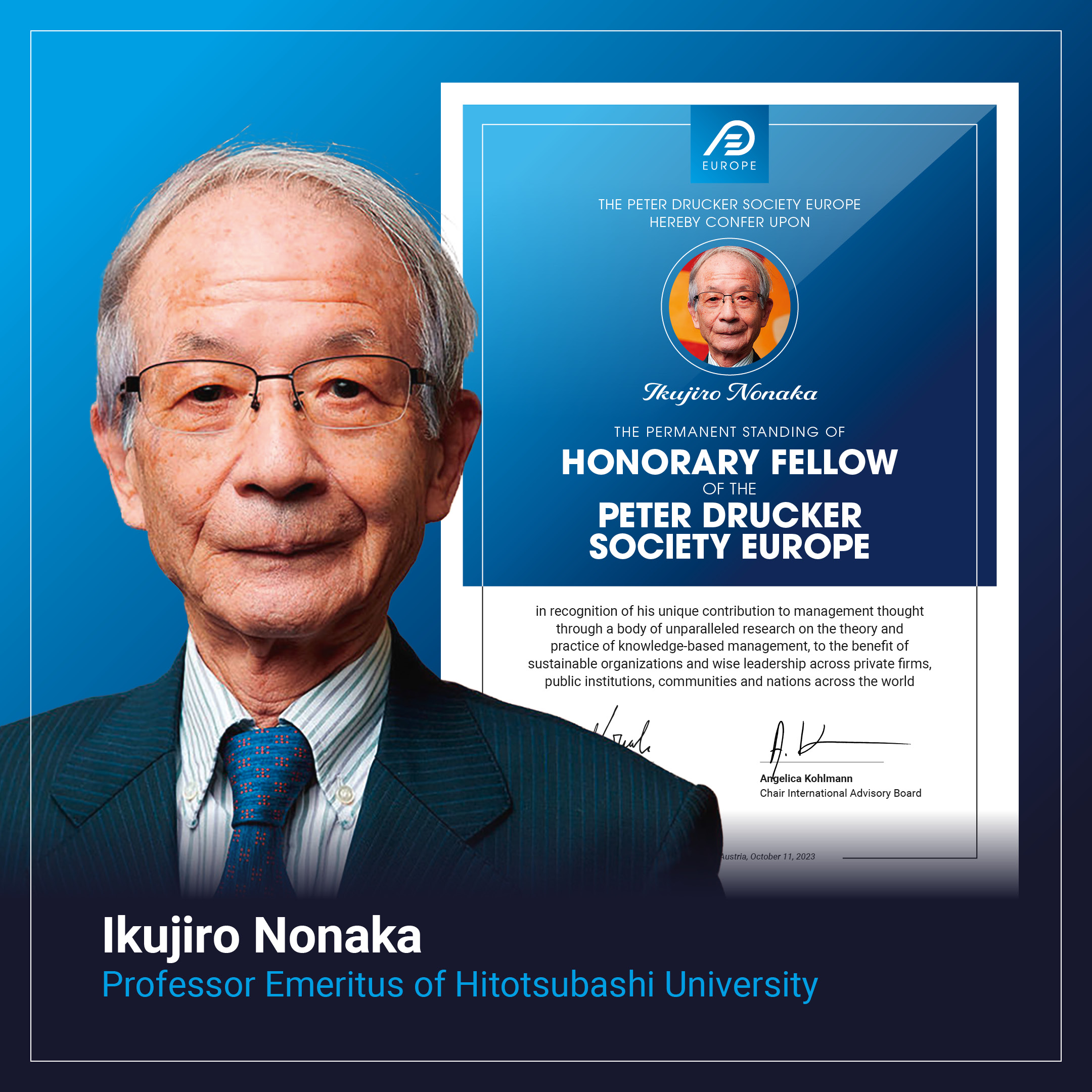 Ikujiro Nonaka, Professor Emeritus of Hitotsubashi University has been awarded the 2023 Honorary Fellowship of the Peter Drucker Society Europe.