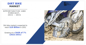OREGAON, PORTLAND, UNITED STATES , October 9, 2023 /EINPresswire.com/ -- Allied Market Research recently published a report, titled, "Dirt Bike Market by Type (Motocross Motorcycle, Enduro Motorcycle, Trail Motorcycle, Track-racing Motorcycle), by Propulsion Type (ICE, Electric), by Application (Commercial, Personal, Industrial, Others), by Price Range (Low to Mid, High): Global Opportunity Analysis and Industry Forecast, 2021-2031". As per the report, the global dirt bike industry was pegged at $9.1 billion in 2021, and is expected to reach $18 billion by 2031, growing at a CAGR of 7.0% from 2022 to 2031. The report offers a detailed analysis of changing market trends, top segments, key investment pockets, value chains, regional landscape, and competitive scenario.
