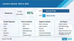 ROCKVILLE, MARYLAND, UNITED STATES, October 10, 2023 /EINPresswire.com/ -- The insurance sector, traditionally characterized by well-established practices, has experienced a surge of innovation in recent years, driven by the emergence of insurtech companies in the United States. Within this dynamic landscape, the U.S. insurtech market has become a hub of innovation, where both startups and established industry players are catalyzing change and reshaping the field.Globally, the insurtech market size is on a trajectory of significant expansion, projected to grow from a value of US$ 8.6 billion in 2023 to a substantial US$ 34.7 billion by the end of 2033. This rapid growth is underpinned by a robust Compound Annual Growth Rate (CAGR) of 15%. A pivotal factor contributing to the increasing size of the insurtech market is the escalating volume of insurance claims worldwide.