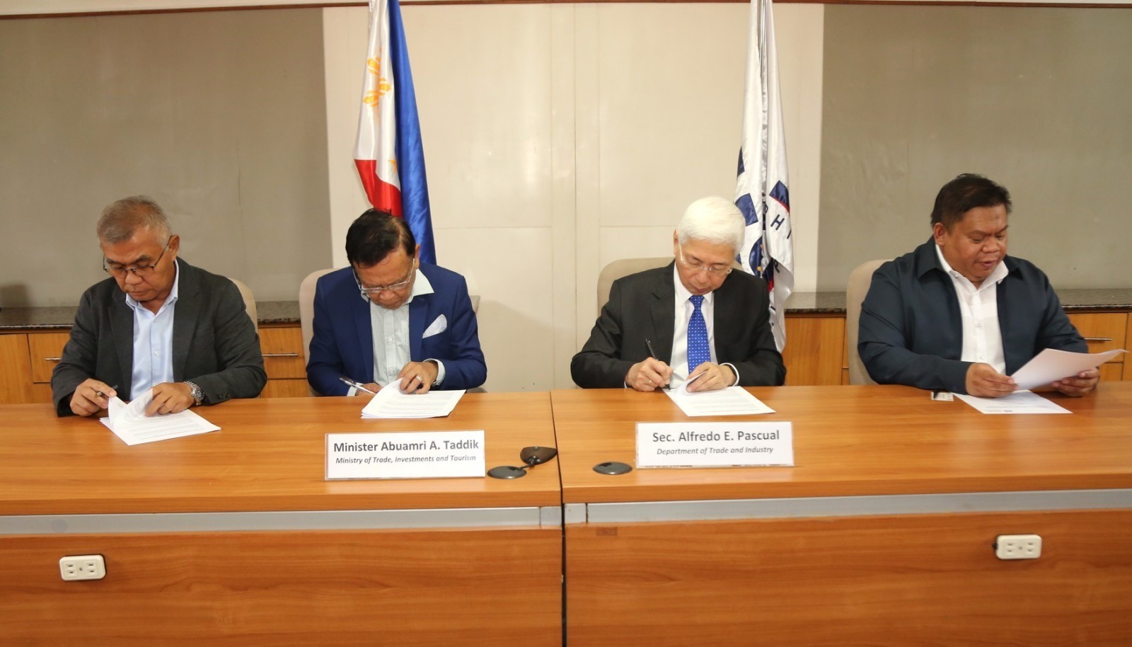 DTI Secretary Alfredo E. Pascual and Minister Abuamri A. Taddik, Chairperson of the Bangsamoro Halal Board signed cooperation agreement on Halal Industry development and promotion