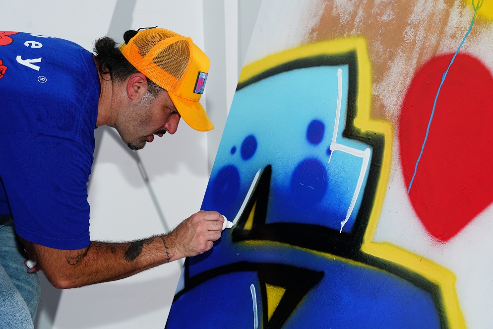 Alan Berman, a graffiti artist, wowed the audience with a live graffiti piece, which he then invited attendees to help complete. This unique interaction allowed guests to experience the artistic process and connect with Alan Berman's creative energy. In addition to his live art performance, he shared his plans to return to Venezuela to work with a non-profit organization, creating art opportunities for underserved children. His enthusiasm for this initiative was visible, and he was eager to make a difference through his art.