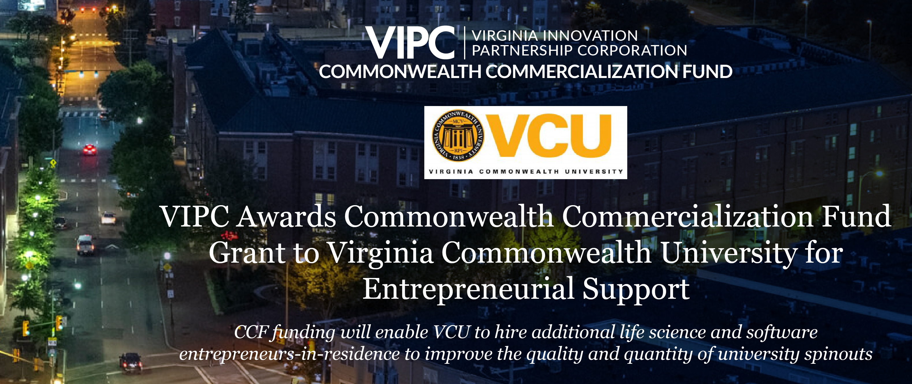 RICHMOND, VIRGINIA, UNITED STATES, October 16, 2023 /EINPresswire.com/ -- The Virginia Innovation Partnership Corporation (VIPC) today announced that Virginia Commonwealth University (VCU) has been awarded a Commonwealth Commercialization Fund (CCF) grant to expand VCU’s entrepreneur-in-residence (EIR) program. VIPC’s CCF EIR program provides annual grant funding to Virginia’s public research colleges and universities to help fund one or more seasoned entrepreneurs who will work with faculty and students to explore technology commercialization opportunities, with the goal of launching technology-driven startup companies.