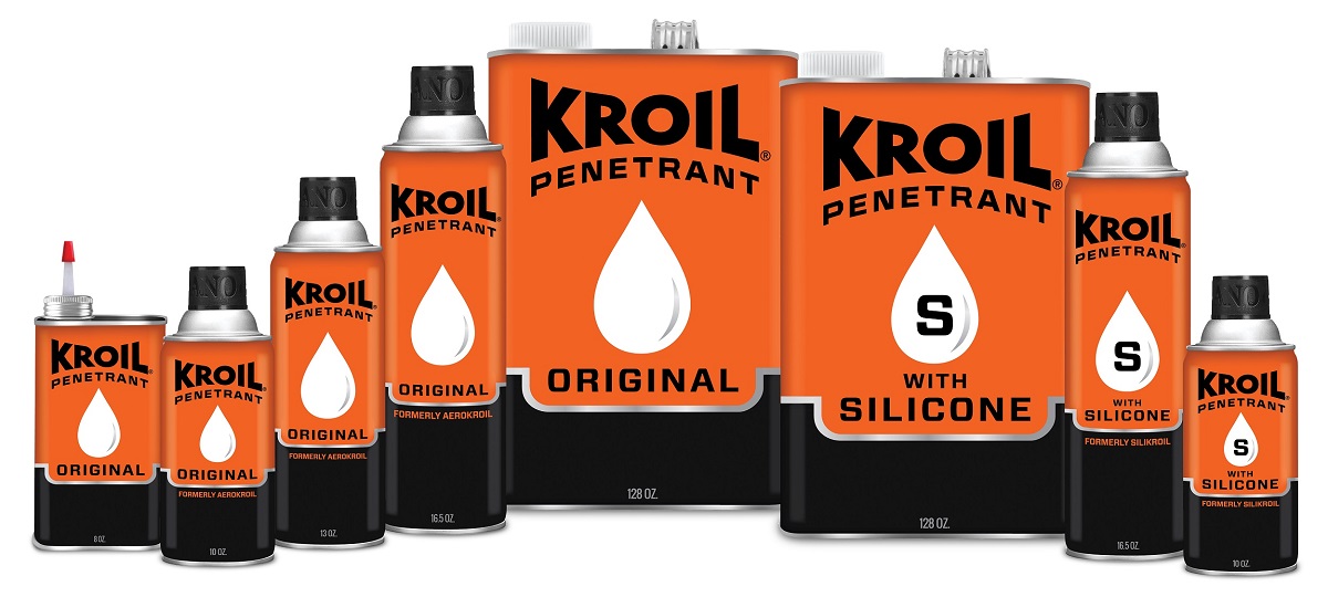 • Kroil Penetrants: loosen rusted, seized, frozen, and corroded fasteners; helps prevent breaking nuts and bolts (Kroil Original Penetrant, Kroil Penetrant