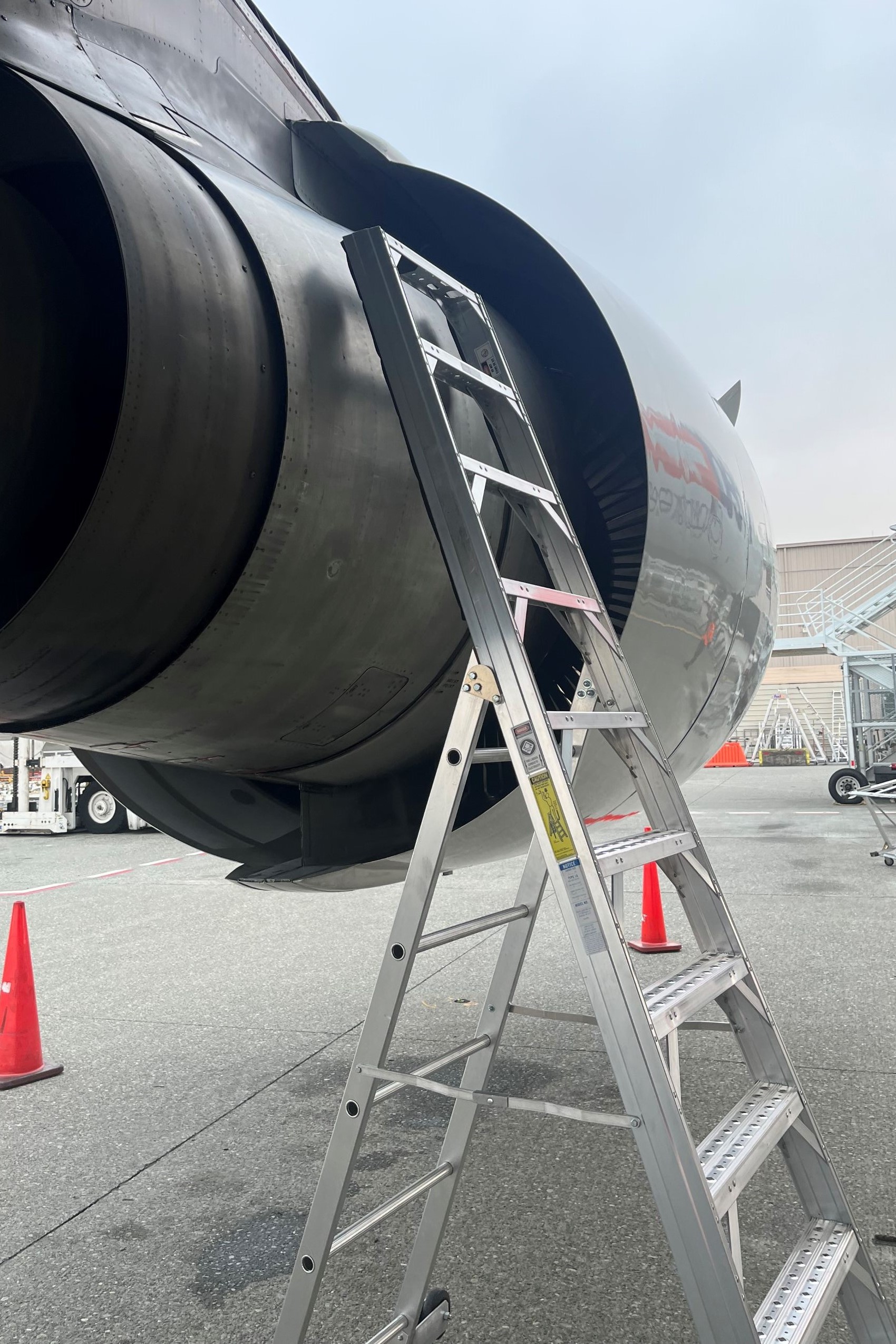 “We designed the AeroLadder for easily and safely accessing things like engine pylon panels and opening up a cowling where a mechanic needs to get a ladder underneath the wing or get to the top of the engine,” said Patrick Reagan, president of Metallic Ladder. “Sometimes, maintenance professionals need to get creative about using ladders; our aim is designing ‘dangerous’ out of ladders.”