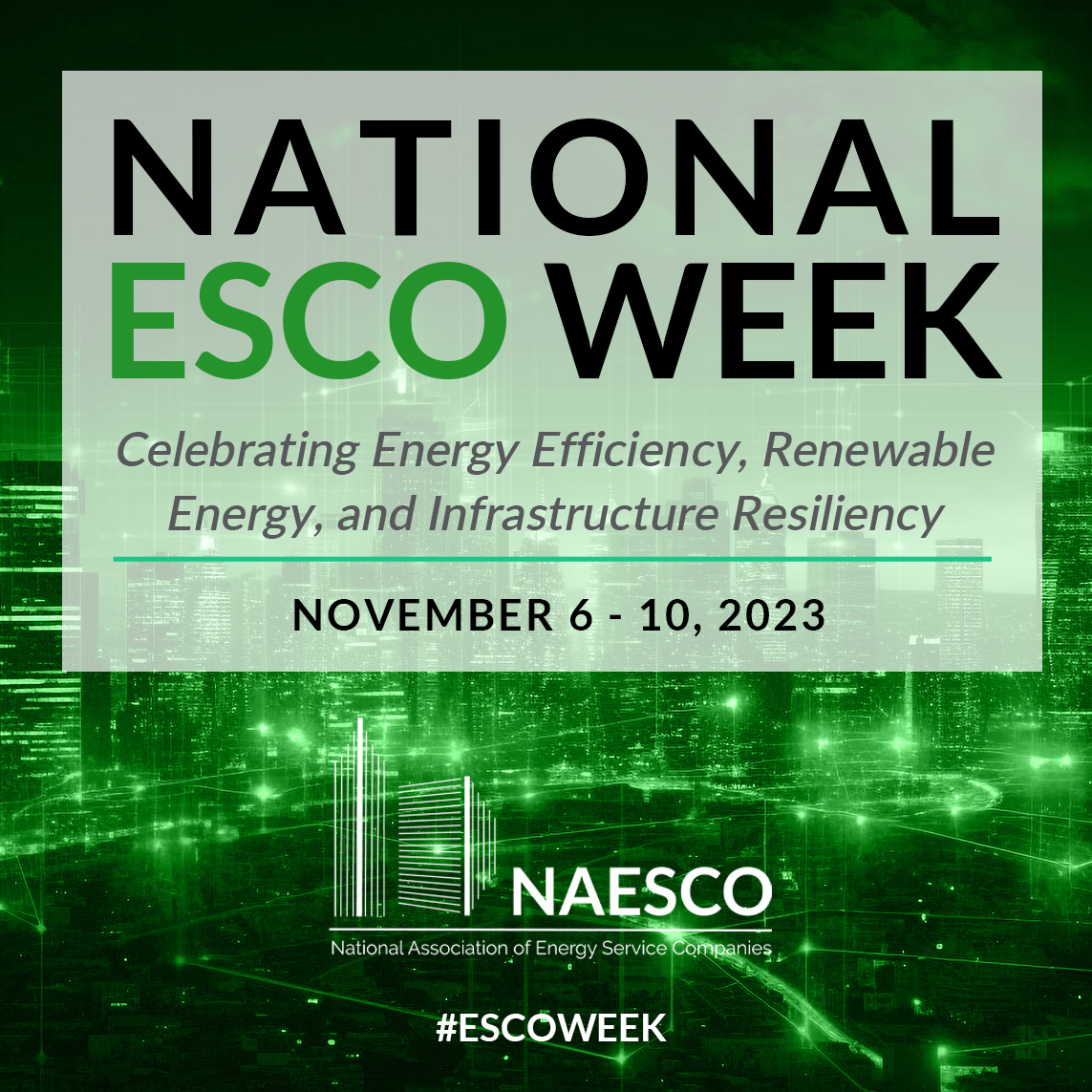 This year, NAESCO will be celebrating ESCO week by showcasing the successes and impacts of performance contracts and public-private partnerships. Throughout the week, NAESCO will share resources and customer testimonials on the NAESCO's LinkedIn (@naesco) and Twitter (@NaescoNews) pages. ESCO week will run alongside NAESCO's Annual Meeting, R3 Conference and Innovation Expo, taking place November 6th- 8th in New Orleans.