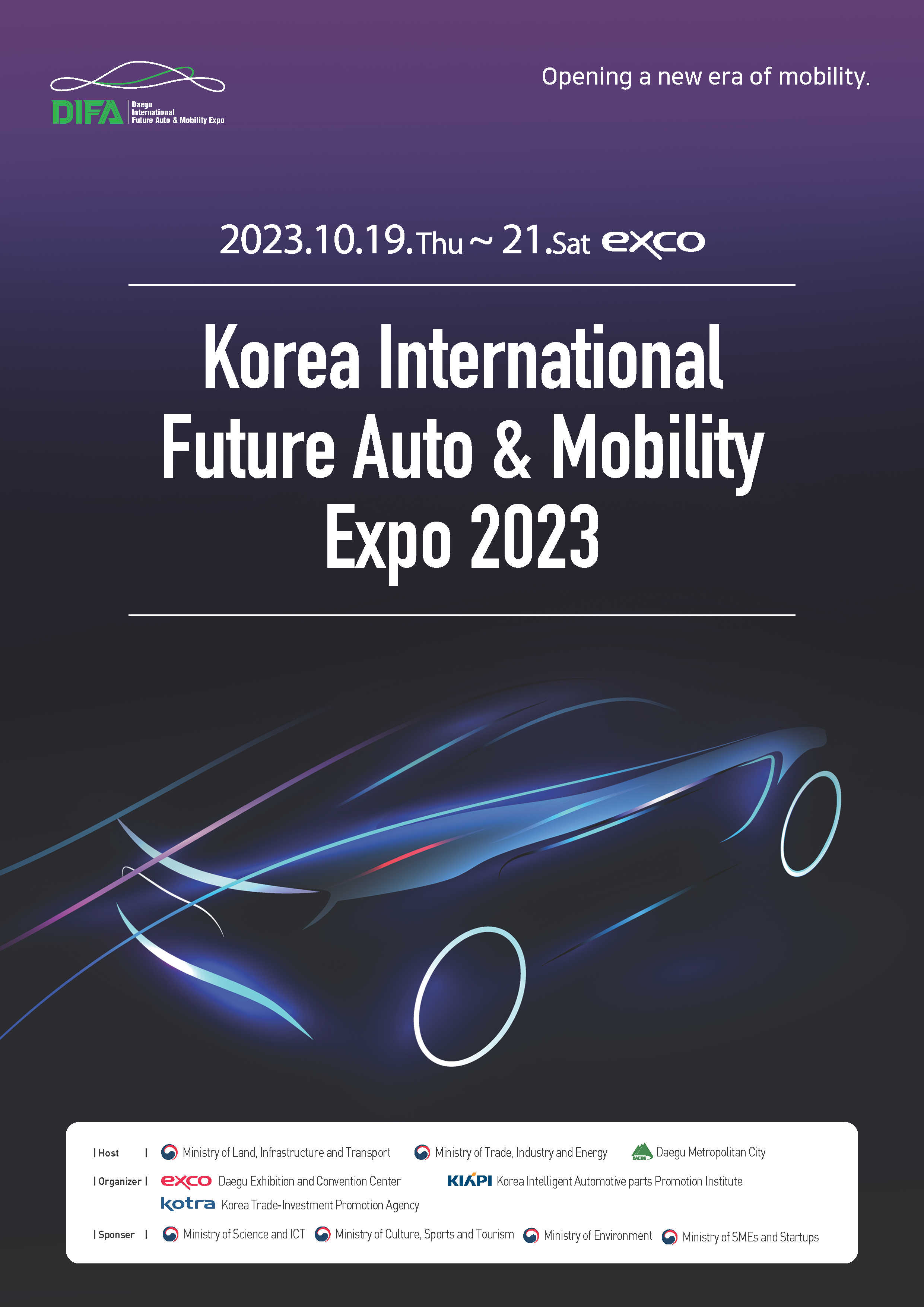 DAEGU, REPUBLIC OF KOREA (SOUTH), October 17, 2023 /EINPresswire.com/ -- Daegu Metropolitan City, in collaboration with the Republic of Korea’s Ministry of Land, Infrastructure, and Transport and the Ministry of Trade, Industry, and Energy, said it is putting forth great efforts in preparing for the “2023 Daegu International Future Auto & Mobility Expo (2023 DIFA Expo),” scheduled to take place at EXCO from October 19 (Thursday) to 21 (Saturday).Since its inception in 2017, the DIFA Expo has become a prominent regional exhibition and convention event encompassing the entire mobility industry, including eco-friendly vehicles (electric and hydrogen), electric vehicle components (motors, batteries, chargers), autonomous driving, and urban air mobility (UAM).