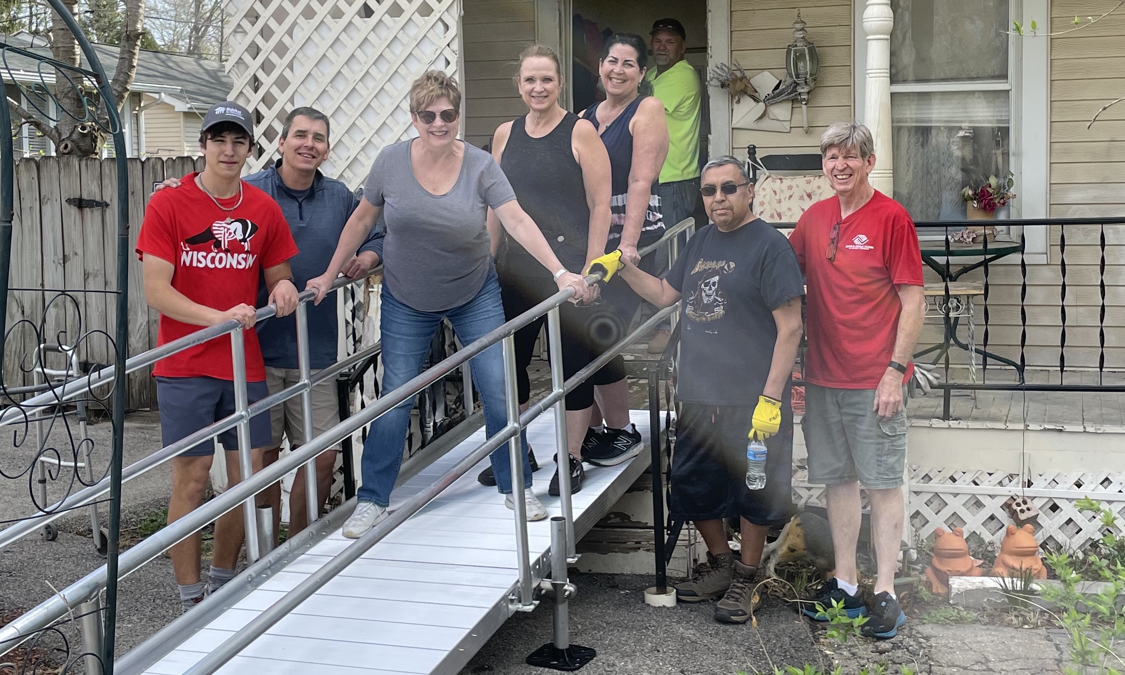 Thanks to the Repair Collaborative and the support of Wesco, Frank and Shelby applied with nearby Habitat for Humanity of Northern Fox Valley, and soon a team of volunteers arrived to assess the couple's needs. The team worked tirelessly to repair the roof and install a ramp, which made it easier for Frank and Shelby to navigate their home. With the new modifications, they could once again exit and enter their home safely without fear of falling, significantly improving their quality of life and overall well-being.