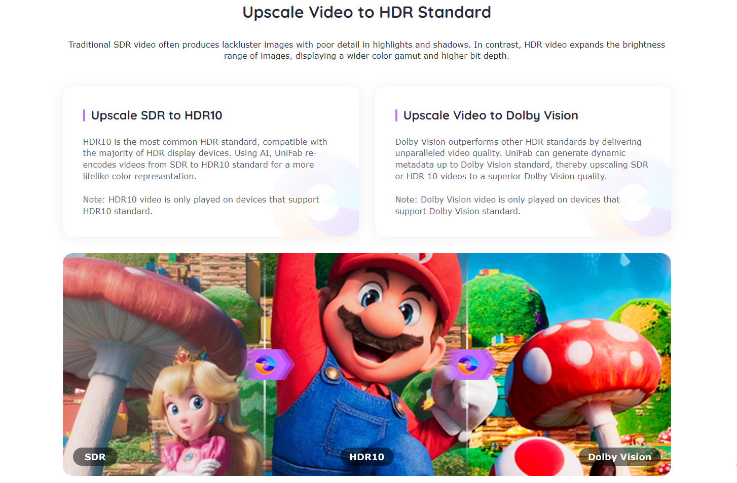 UniFab is taking it a step further by ensuring compatibility with HDR10, the most widespread HDR standard, adopted by a plethora of HDR display devices. Utilizing advanced AI, UniFab transcodes videos from SDR to HDR10 standard in a breeze, amplifying color vibrancy and representation to emulate a true-to-life view.