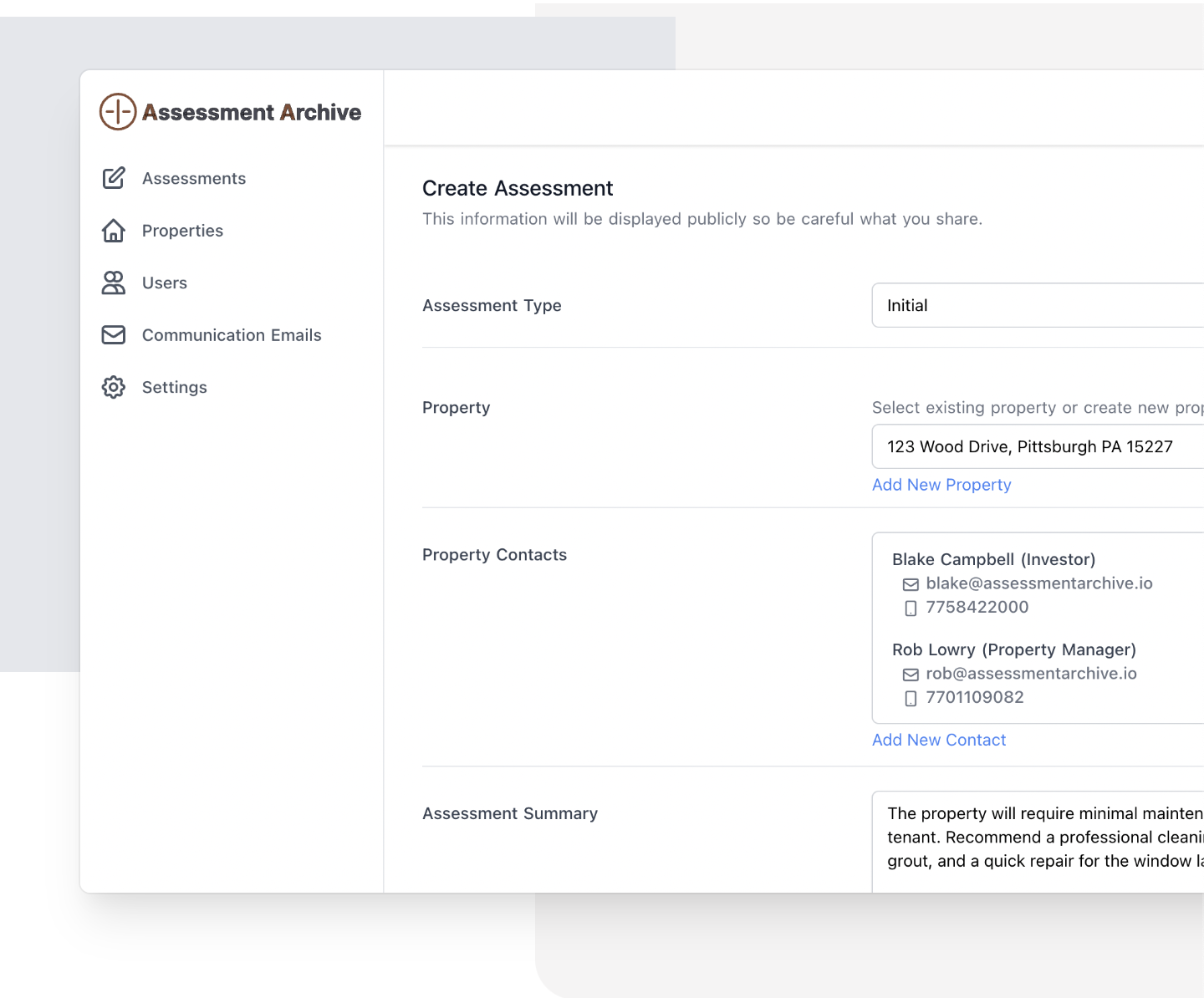 AUSTIN, TEXAS, UNITED STATES, October 26, 2023 /EINPresswire.com/ -- 1836 Property Management, Austin’s premier property management company, is helping clients reach their real estate investment goals by educating investors on best practices and ensuring properties are occupied and generating revenue. The company recently announced a new proprietary solution (Assessment Archive) that was created to make the communication process about property maintenance more seamless.The tool allows its users to store photos and videos of a rental property, as well as detailed notes from maintenance providers. It also archives the stored content by homeowner name, address, vendor name, project date, sender and more. Users can visit the platform and search for the data or information they need with ease. And landlords or their property managers can send links that contain property content via email or text so that anyone can view it, anytime.