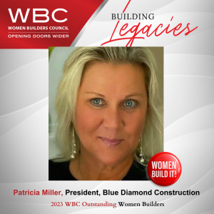 JACKSTON, NJ, USA, October 23, 2023 /EINPresswire.com/ -- Pat Miller, owner of Jackson, NJ-based Blue Diamond Construction, has been honored with the 2023 Outstanding Women Builders Award by the Women Builders Council.At the annual award ceremony in New York City, construction industry leaders, public and private sector decision-makers and the women of Women Builders Council (WBC) gathered to celebrate Miller and the other winners for their role inspiring the next generation of women builders.