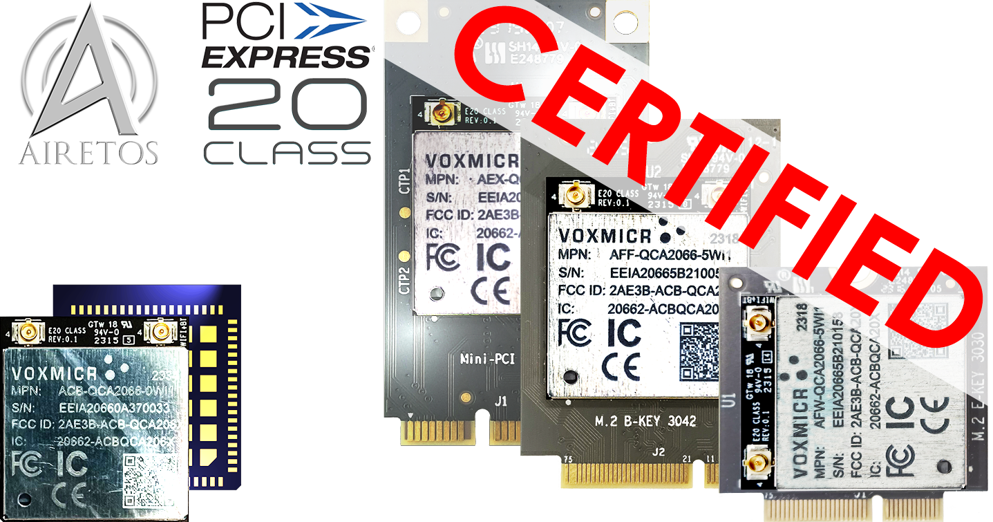 AIRETOS E20 Class - Certified across form-factors of the LGA Wi-Fi6 module, also when placed on carriers for m.2 key, m.2 b-key and miniPCI express