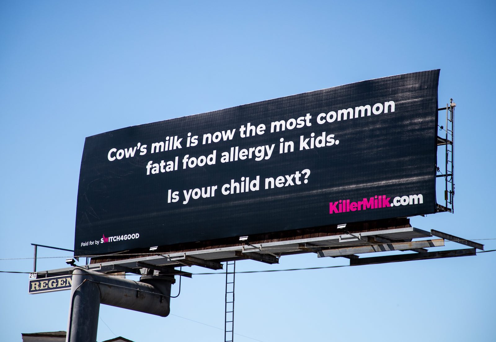 Killer Milk billboard campaign warns that cow’s milk is now the leading cause of fatal anaphylaxis among school children