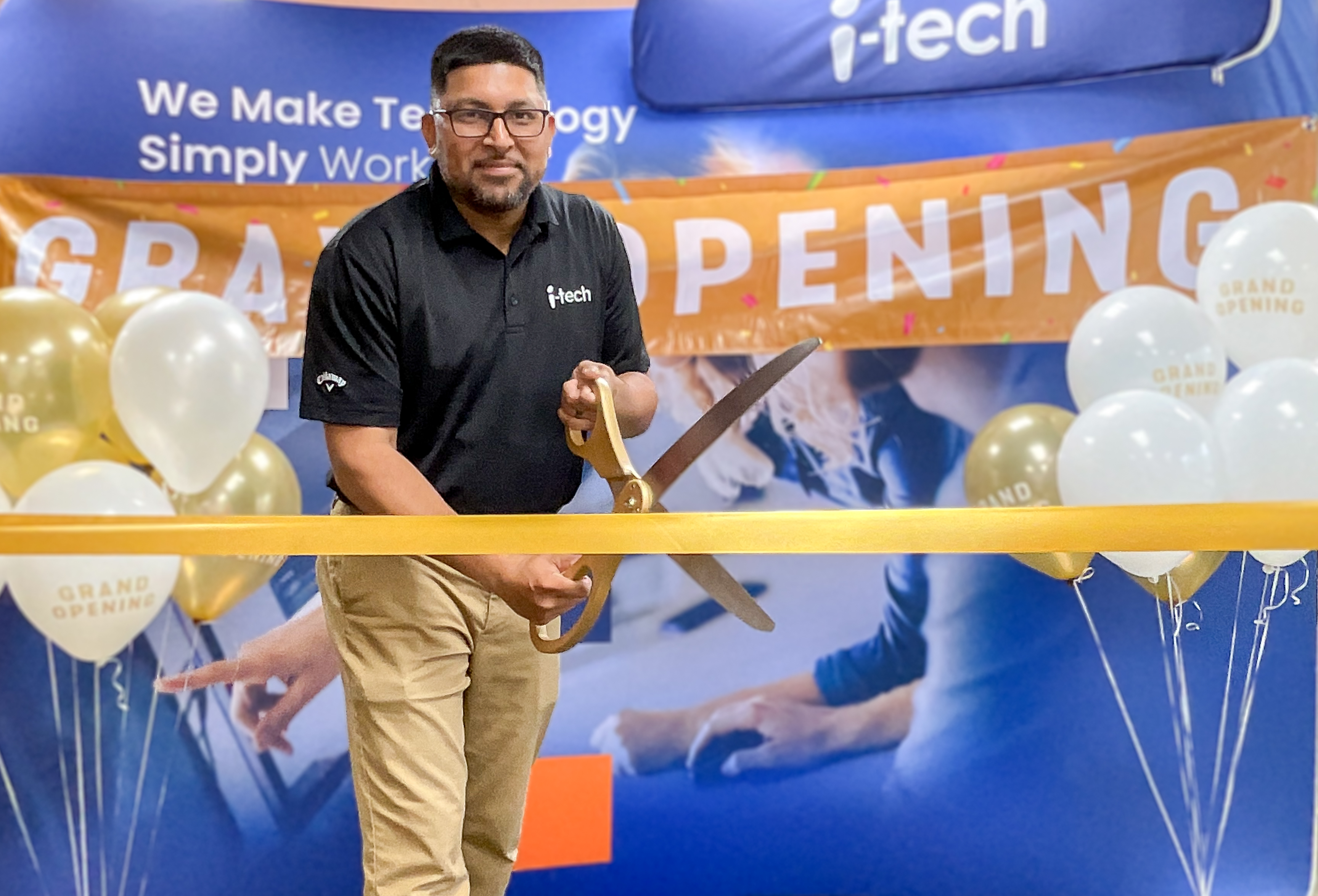 i-Tech Support's Zaheer Ali, Regional Manager of South Florida, cuts the ribbon on the new local branch
