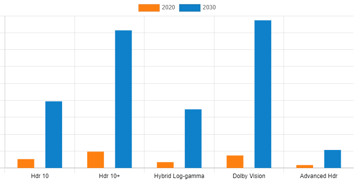 In accordance with the insights of the CXOs of leading companies, the global high dynamic range market is projected to exhibit high growth potential, especially in Asia-Pacific and Europe. This is attributed to high adoption of smartphones, rise in demand for high dynamic range in gaming applications, expansion of the entertainment industry, and rapid infrastructural development. Furthermore, consumers who cannot afford to buy a smart, connected TV are now streaming over the top (OTT) content on smartphones. As number of customers using smartphones to stream OTT services are increasingly, the growth potential of larger screen smartphones market is projected to increase in developing economies, which, in turn, is likely to foster the demand for high dynamic range-capable smartphone devices.