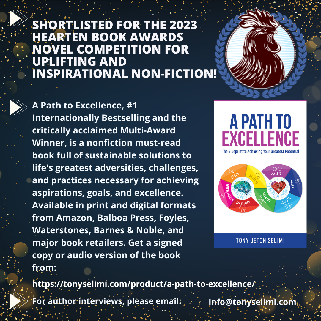 Renowned for its uplifting and inspirational approach, the much-acclaimed non-fiction masterpiece, 'A Path to Excellence', penned by Tony Jeton Selimi, has achieved another milestone by being shortlisted for the illustrious 2023 Hearten Book Awards in the novel competition category. This recognition echoes the book's continuous success in empowering individuals to reach their highest potential.