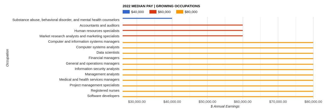 • Growth-Centric Occupations: The report identifies fifteen roles in rapidly expanding industries, ranging from computer systems analysts to registered nurses. These roles offer an enticing median pay of $80,000.
