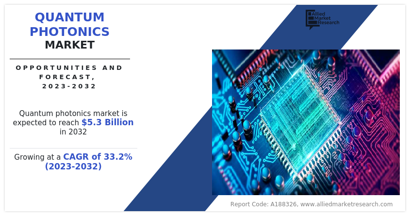 The global quantum photonics market was valued at $0.3 billion in 2022, and is projected to reach $5.3 billion by 2032, growing at a CAGR of 33.2% from 2023 to 2032.