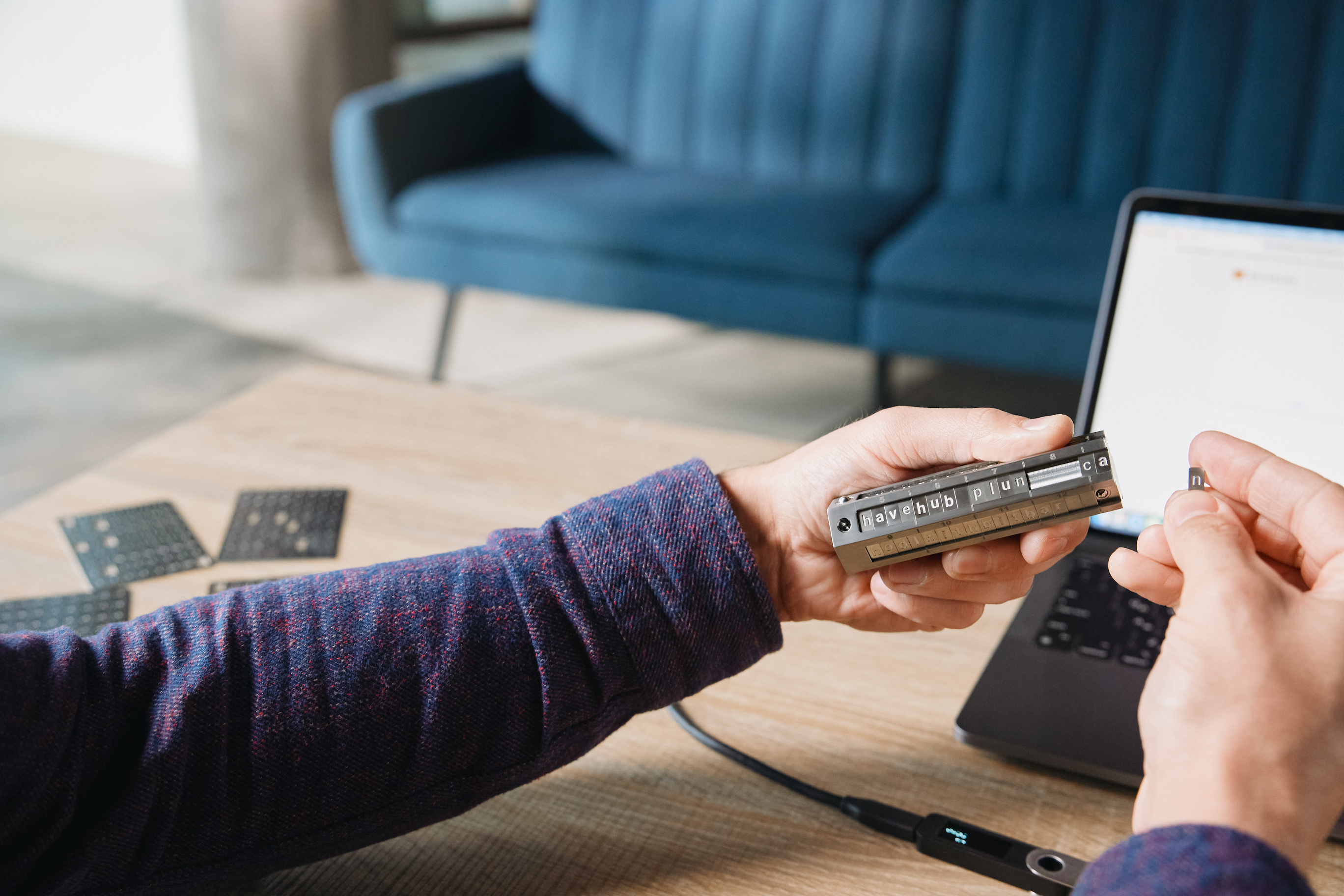 Setting up BitBar is simple and can be completed in just a few minutes and requires no tools. Simply remove BitBar from the secure sleeve, insert the letter tiles corresponding to your seed phrases, and then close and seal for protection.
